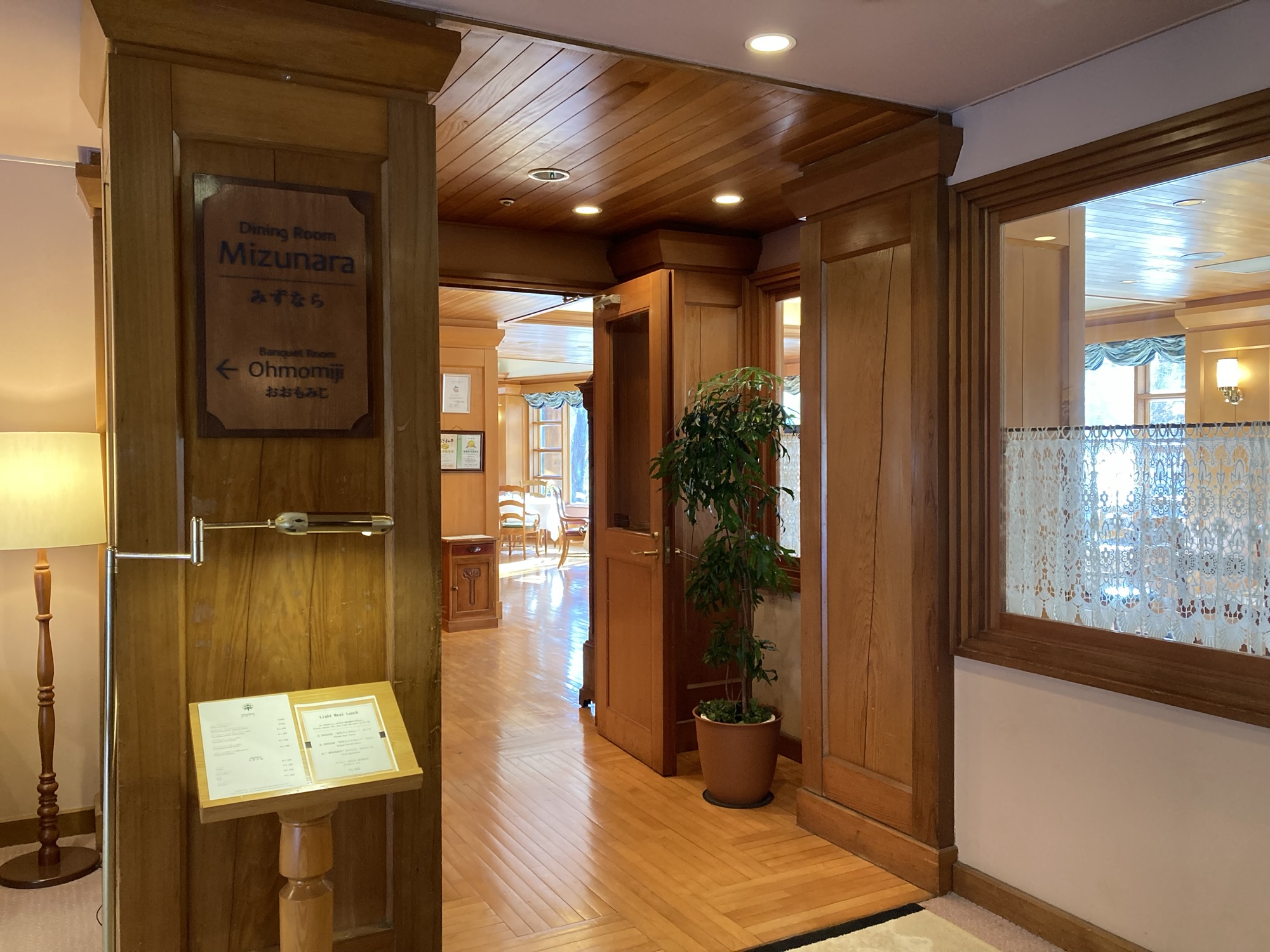 館内は木材を多く使った造りで、山のホテルらしい落ち着いた雰囲気です。