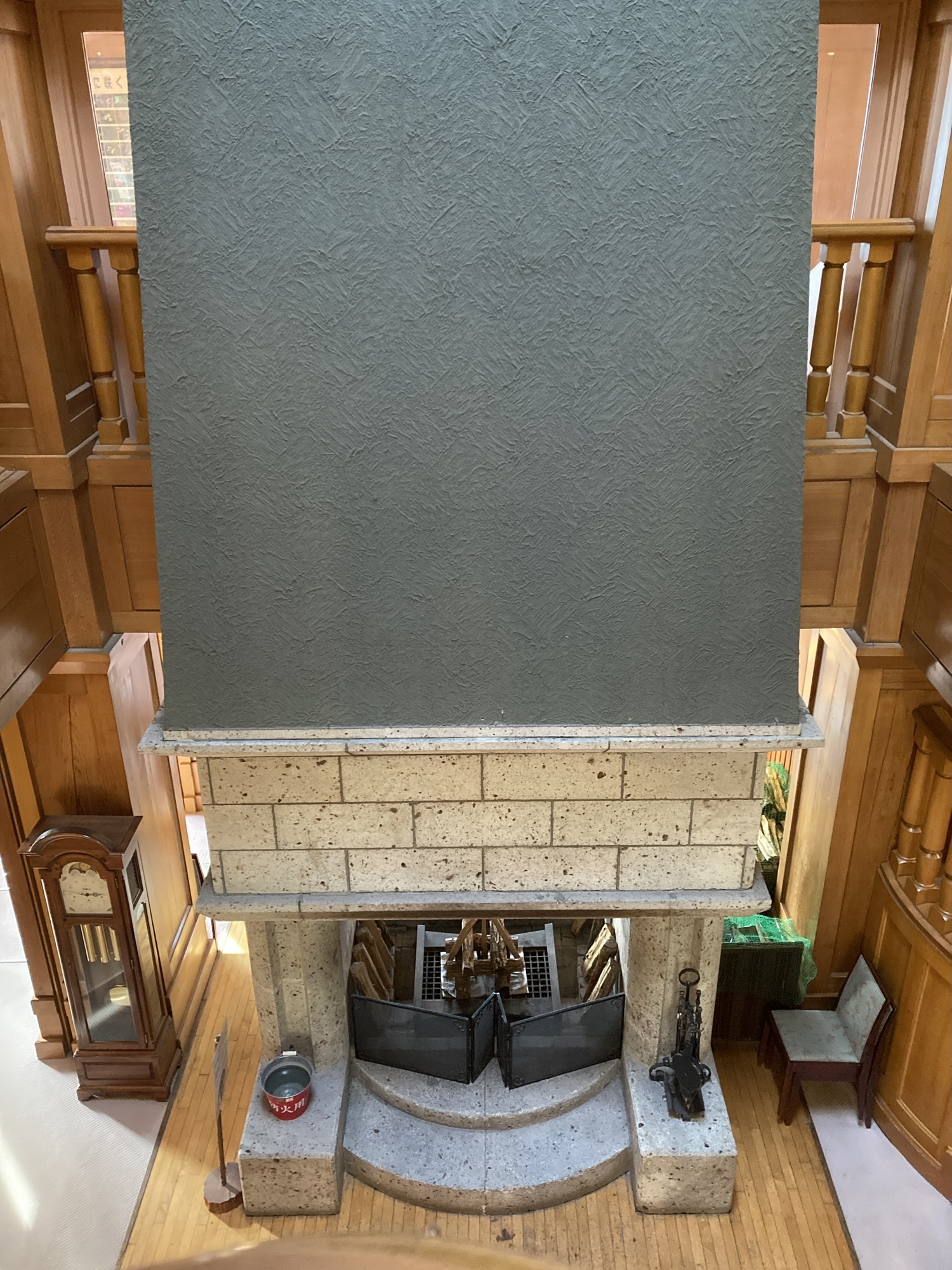 ロビーの真ん中には印象的で大きな暖炉。