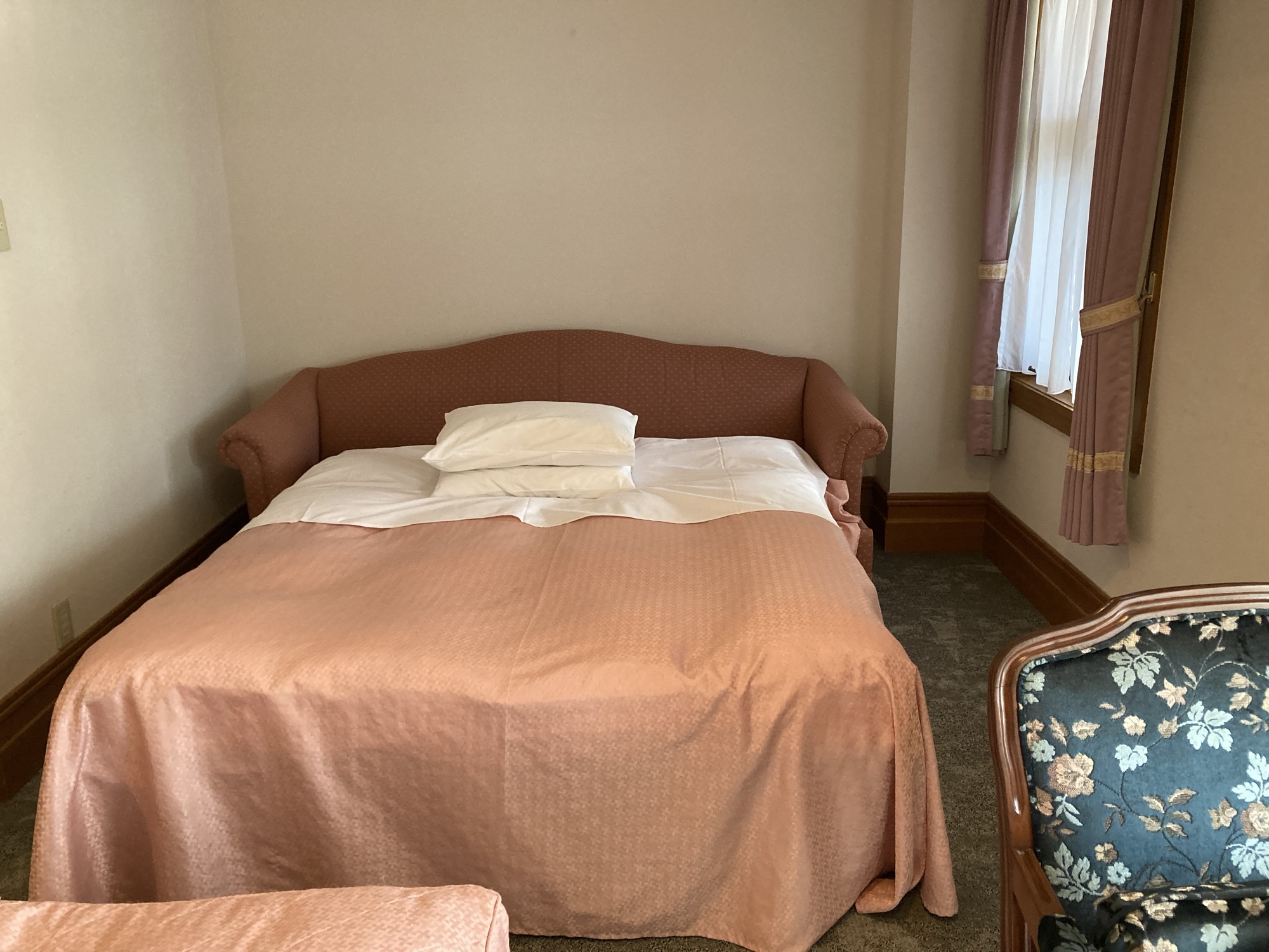 エキストラベッドを入れても通路は確保されており、広さも十分。ソファを拡張したエキストラベッドのメイクは部屋に馴染むようにされており、クイーンサイズなので、備え付けのベッドよりも広いくらい。息子も喜んでいました。
