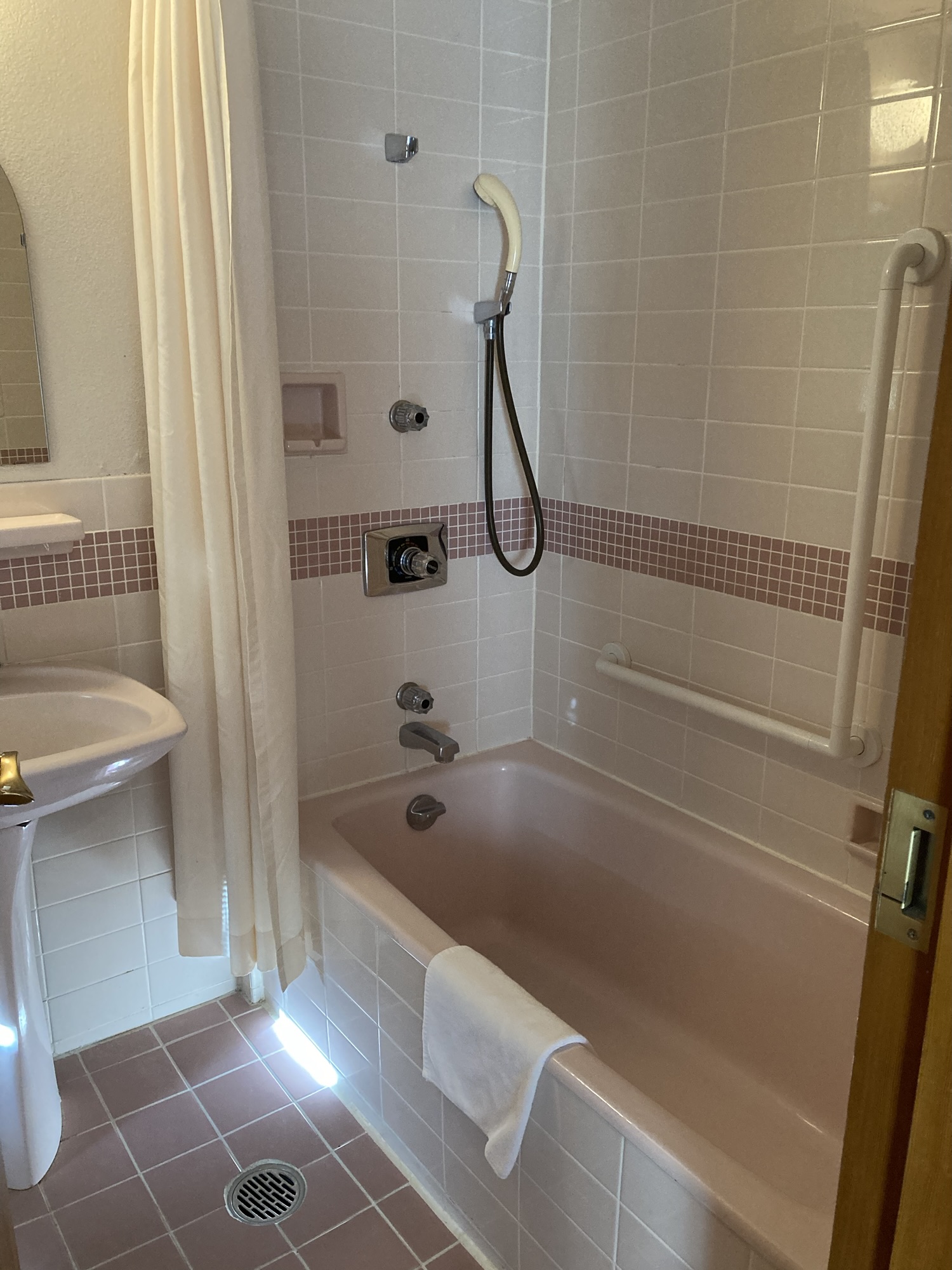 ベッドと同じくピンクで統一されたバスルームも気分が上がります。