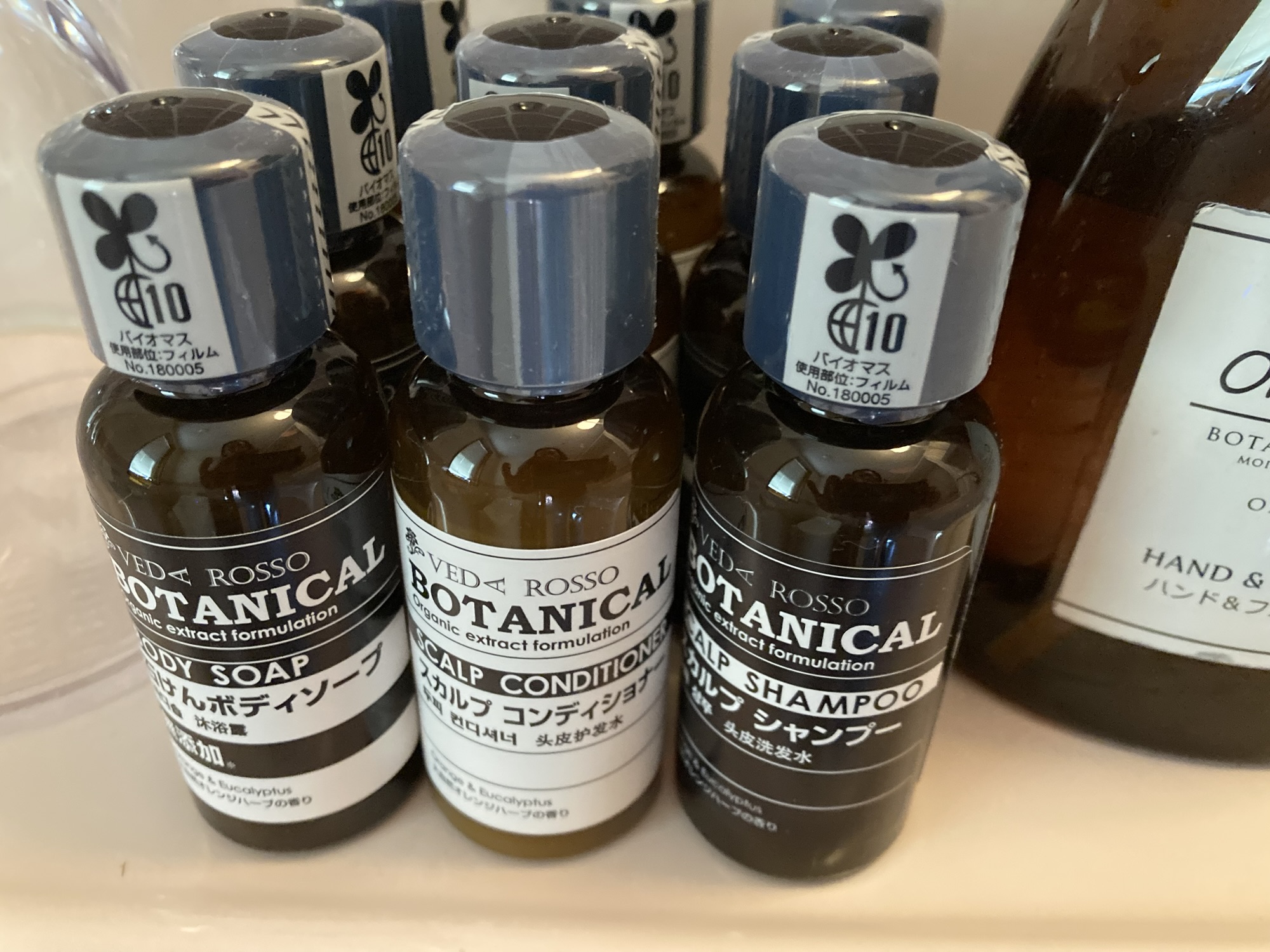アメニティも充実しており、歯ブラシ、ヘアブラシ、カミソリ、コットンセット、スキンケアセット、シャンプー/コンディショナー/ボディソープ、そしてドライヤーが備えられています。