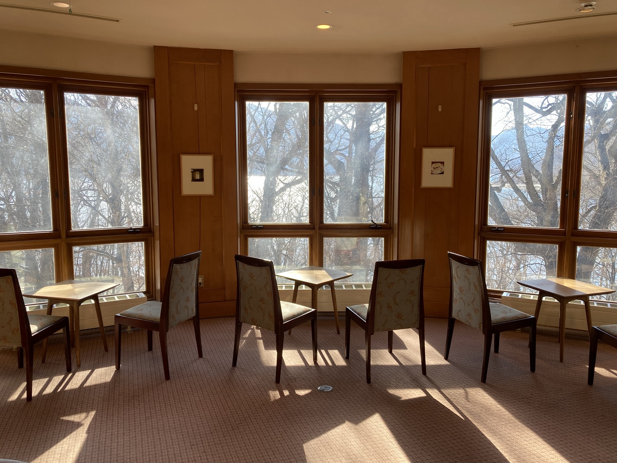 大きな窓からは中禅寺湖が見え、チェックインを待つ間ものんびりと景色を眺めていられます。