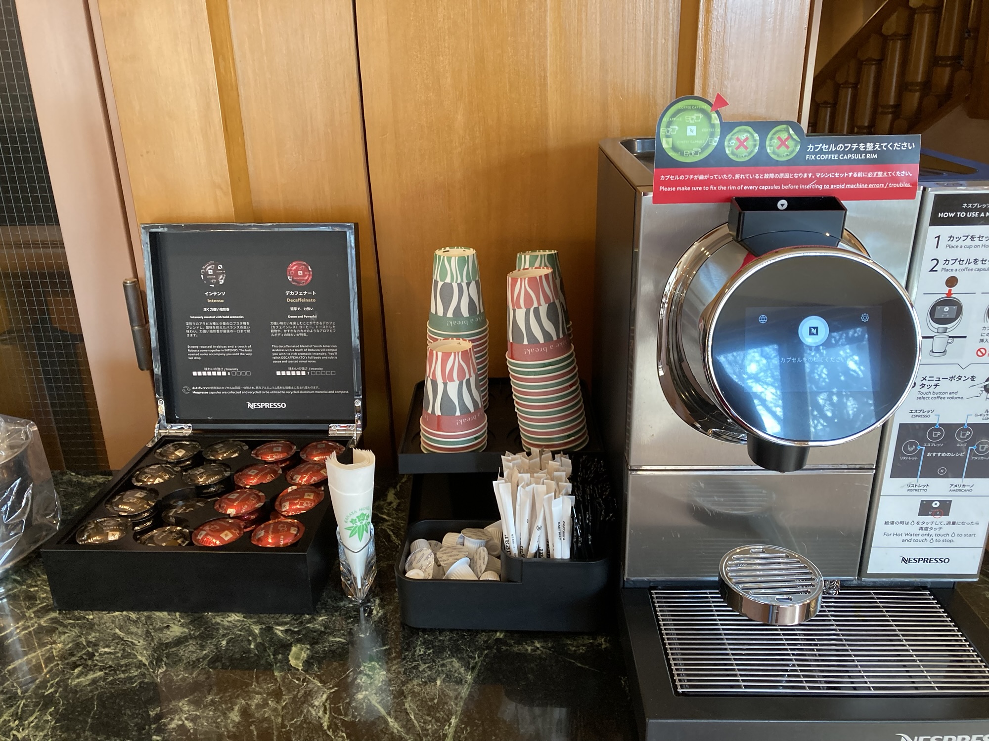 ロビーの真上にある2階のラウンジではコーヒーや紅茶を飲みながらくつろぐことができます。