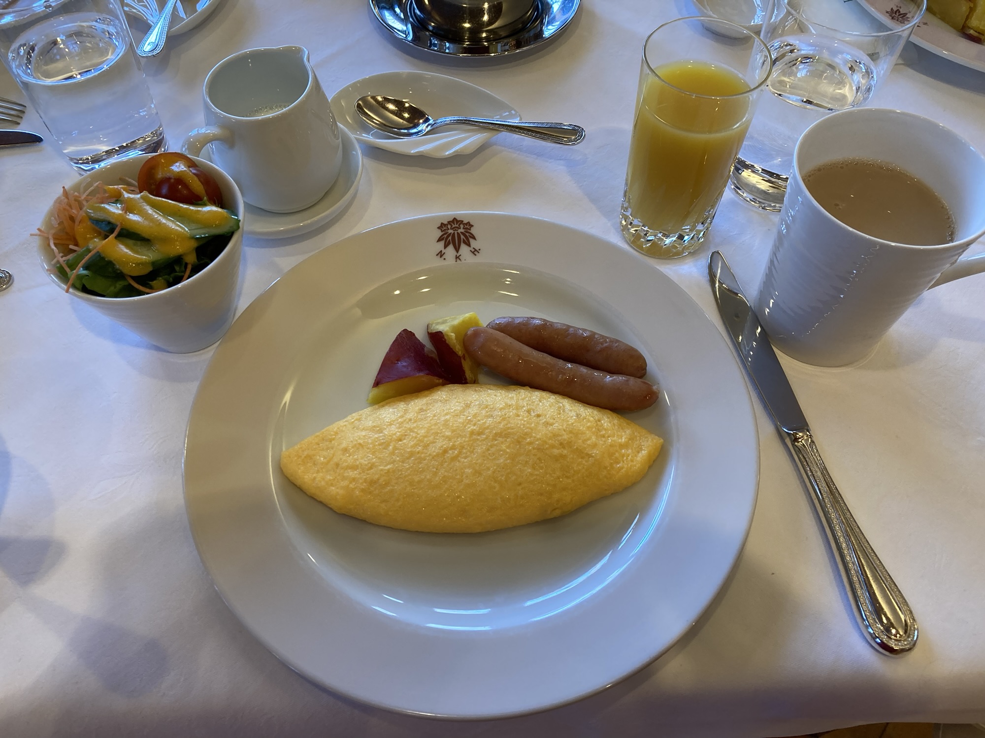 オレンジジュース、オムレツ、那須三元豚のソーセージ、ミルクティーをいただきました。