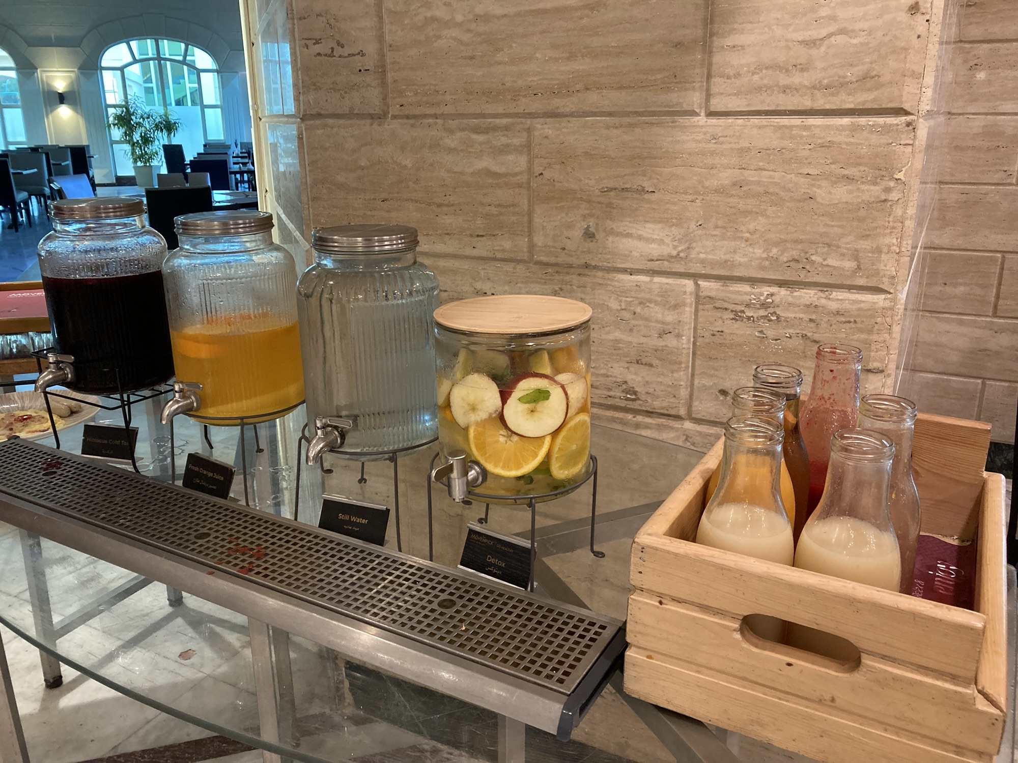 注意点としては、朝食時にドリンクサーバーで飲めるデトックスウォーター(ミネラルウォーターにフルーツやハーブを入れたもの)を飲んでお腹を壊したツアー同行者もいるので、避けた方が無難かもしれません。